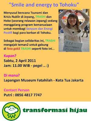 Sampai jumpa di TKP tanggal 2 April 2011 dan mari berbagi Semangat dan Energi untuk saudara kita di Tohoku. Salam kemanusiaan!!