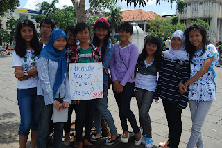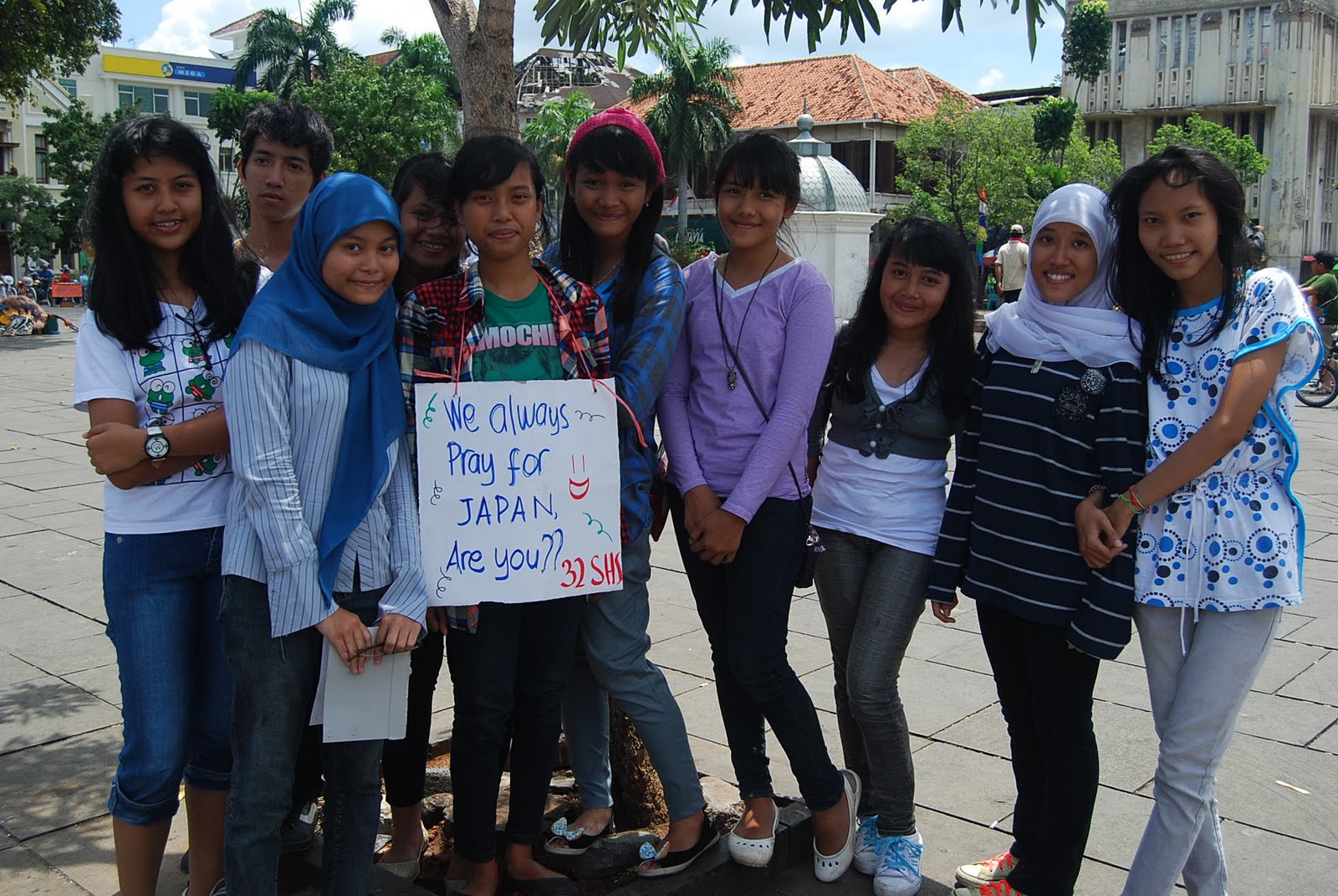 Hari ini (2 April 2011), aku dan teman-teman dapat pengalaman baru. Kami ikut kegiatan Donasi Senyum untuk Tohoku. kita membantu saudara-saudara kita di Jepang. Kami keliling Kota Tua untuk mencari donatur yang mau kasih senyuman dan fotonya. Seribu senyuman untuk menyemangati mereka dalam menghadapi musibah yang mereka alami. hehehe…