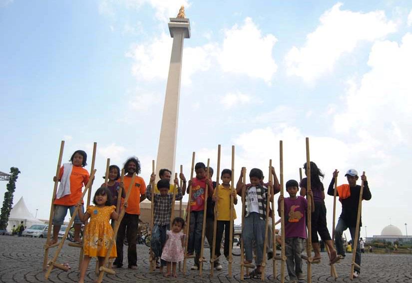 Untuk menambah semarak suasana, tidak lupa kami juga melibatkan anak-anak Condet dengan atraksi egrang mereka yang memukau. “Egrang adalah permainan tradisional warga Betawi bantaran Ciliwung Condet yang sampai saat ini masih dilestarikan keberadaannya” jelas Abdul Khodir penggerak KCC.
