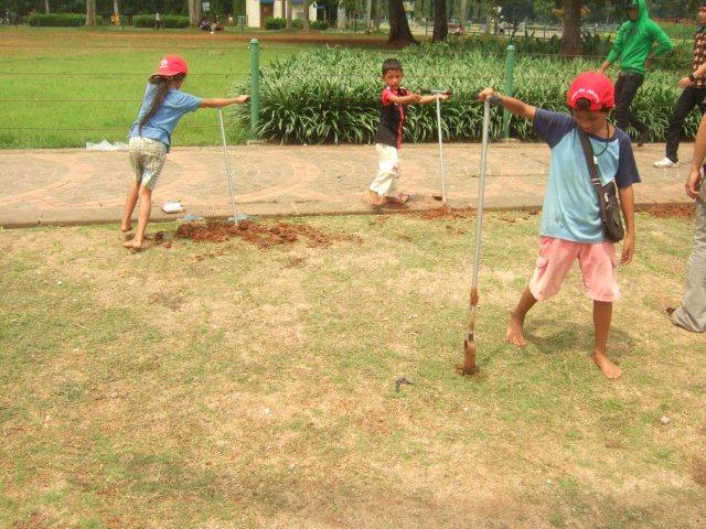 Itu adalah cukilan dialog saat TRASHI bersama Young Transformers, Green Camp Halimun, Koalisi Pejalan Kaki dan siswa SMK 32 melakukan pembuatan lubang biopori di taman Monumen Nasional. Acara yang dilakukan pada hari Minggu, 09/12/2012 lalu ini merupakan salah satu wujud kegiatan TRASHI di ruang terbuka hijau Jakarta.